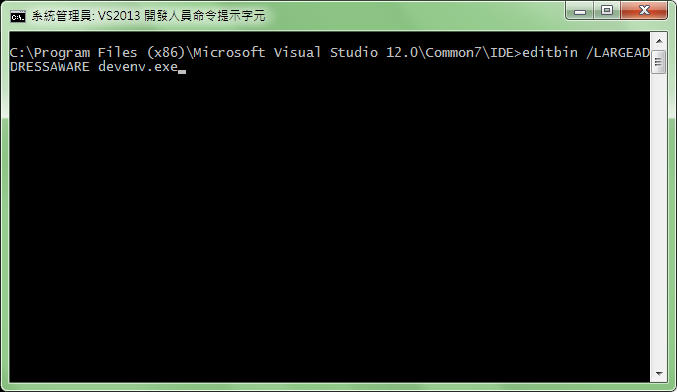 輸入editbin /LARGEADDRESSAWARE devenv.exe