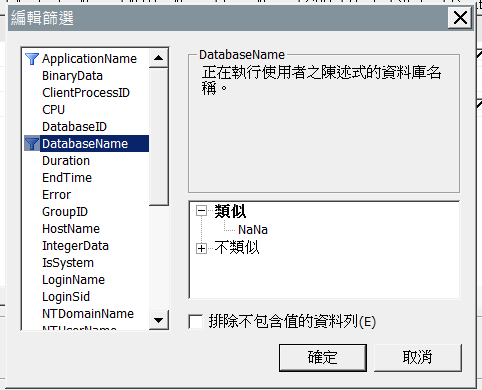 2.資料行篩選在DatabaseName新增資料庫名稱