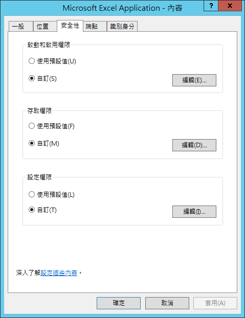 3.【元件服務】>>【我的電腦】>>【DCOM設定】>>在【Microsoft Excel Application】按右鍵>>【內容】