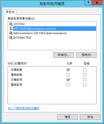 5.【內容】>>【安全性】頁籤>>所有【權限】都新增執行SQL AGENT的帳號(本例為prologium/mes)