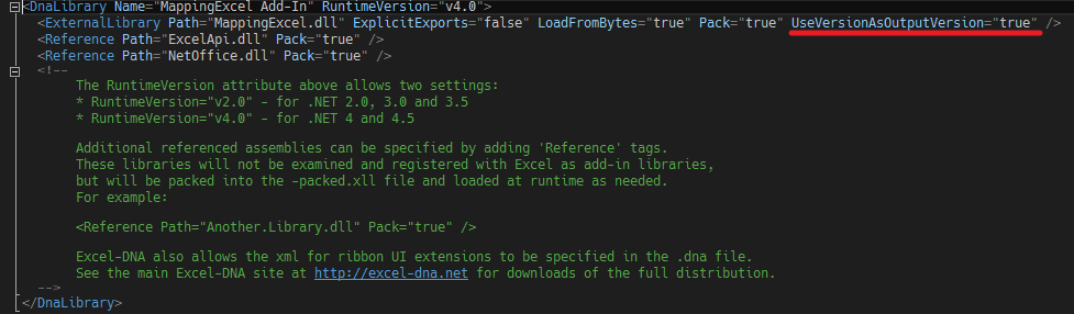 2_<專案名稱>-AddIn.dna設定檔有加上UseVersionAsOutputVersion=”true”。