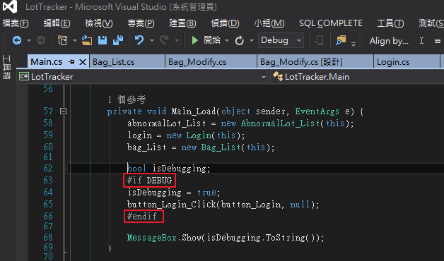 當切換release組態則不會執行該程式片段;另外視情況可加上**#else**作為當處於非debug模式(release或自訂組態)的動作。