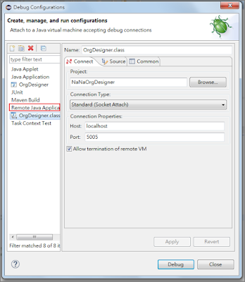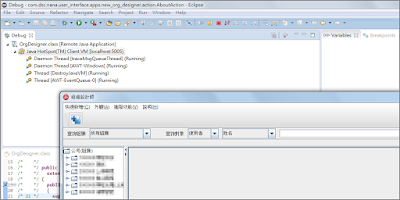 9.Eclipse執行偵錯, 組織設計師顯示畫面, 且執行到中斷點則會暫停。