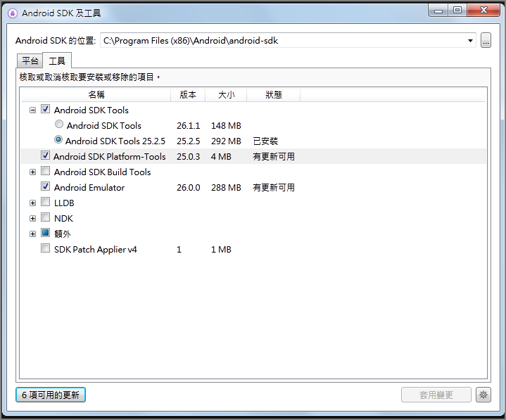 (先確認好要安裝到哪些版本的Android, 下載對應的SDK。)