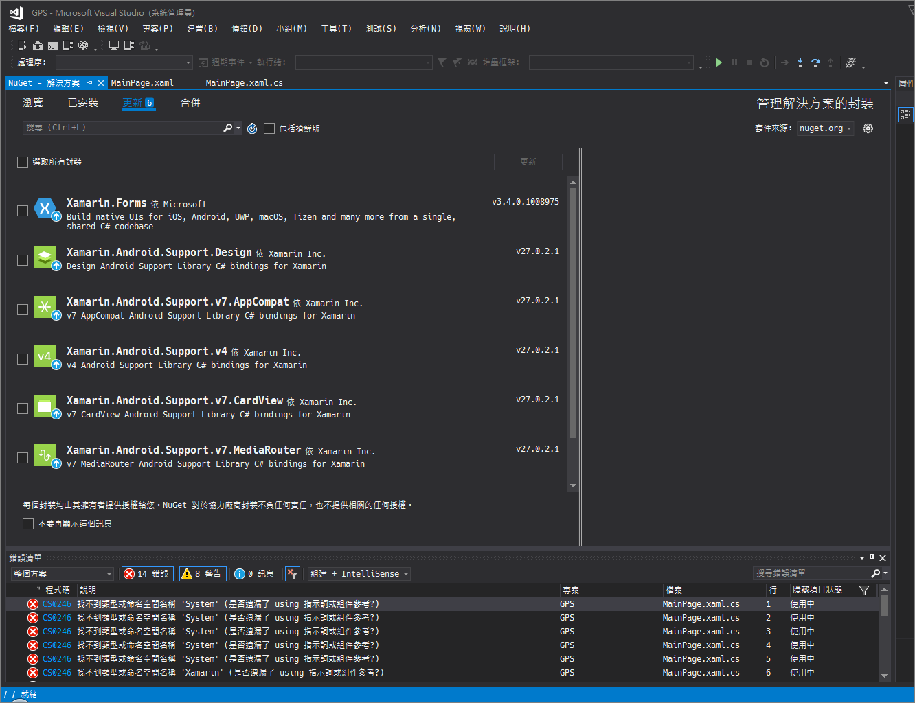 1.更新Android專案的NuGet套件, Xamarin相關都要更新。