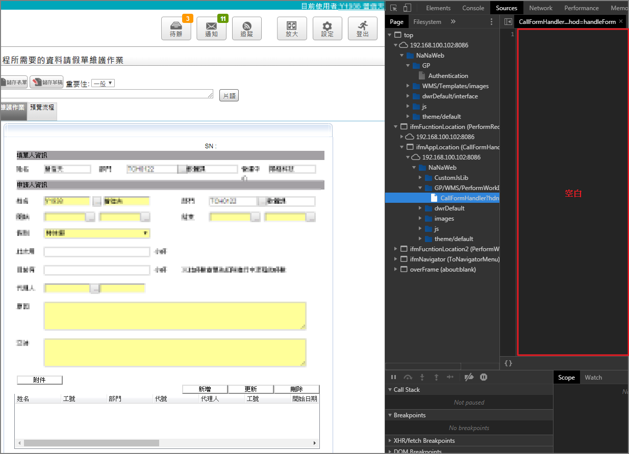 狀況:開單後開啟[開發者工具], 發現source頁籤是空白, 無法debug。