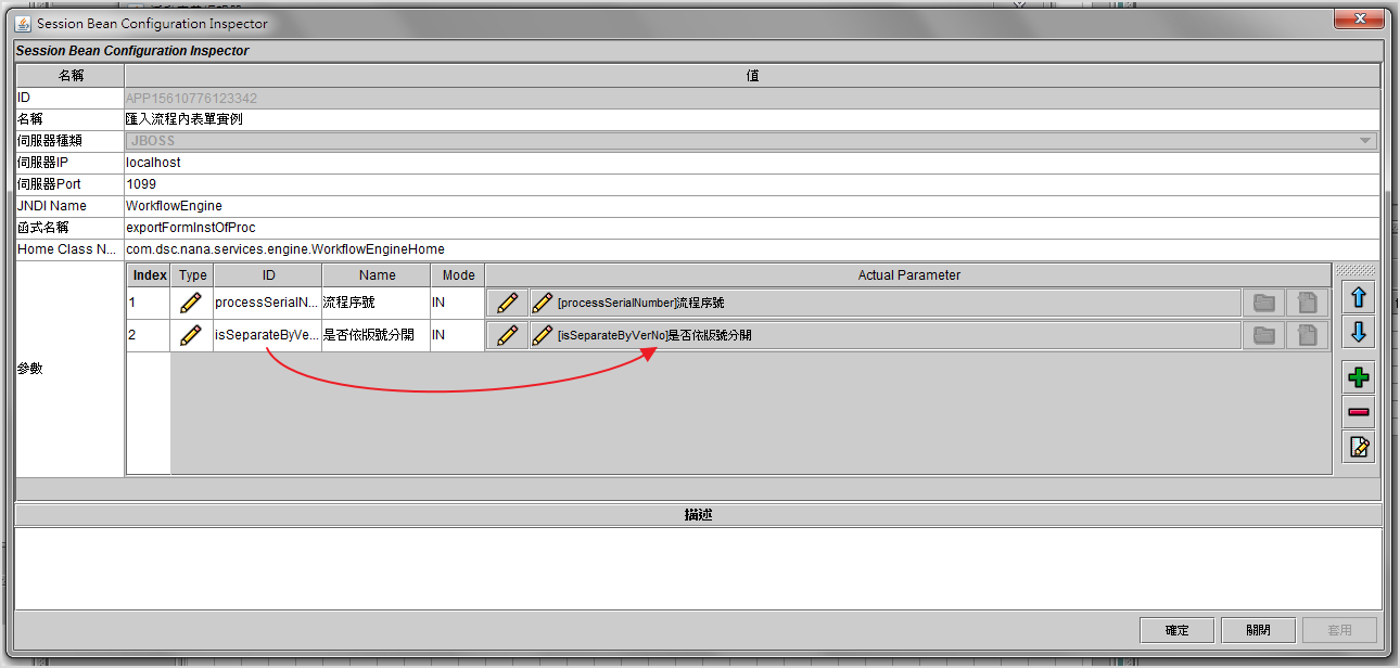 但是如果相反地,流程變數名稱改用鼎新提供的pProcessInstanceSN/pSeparateByVerNo,反而無法存入表單(暫不知原因為何)