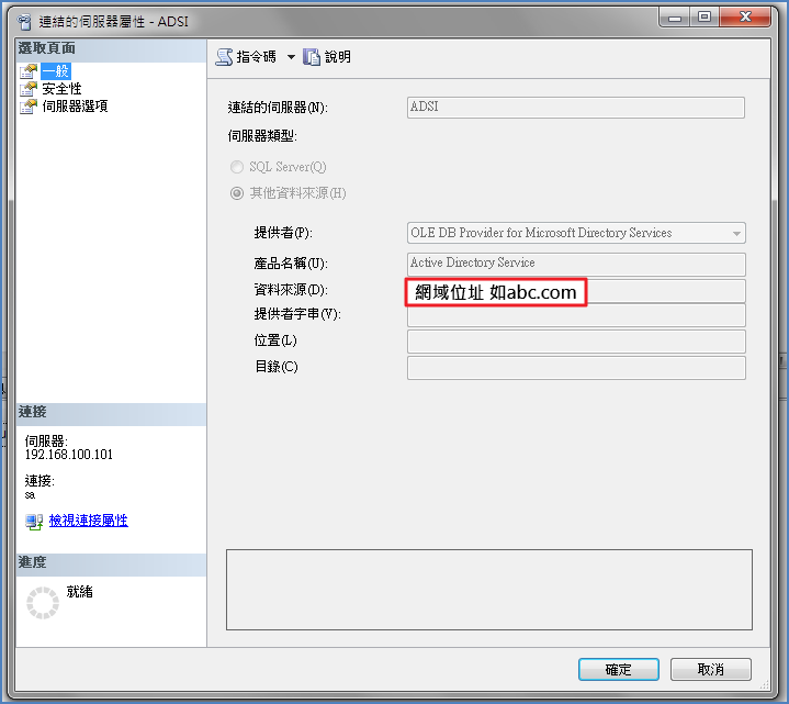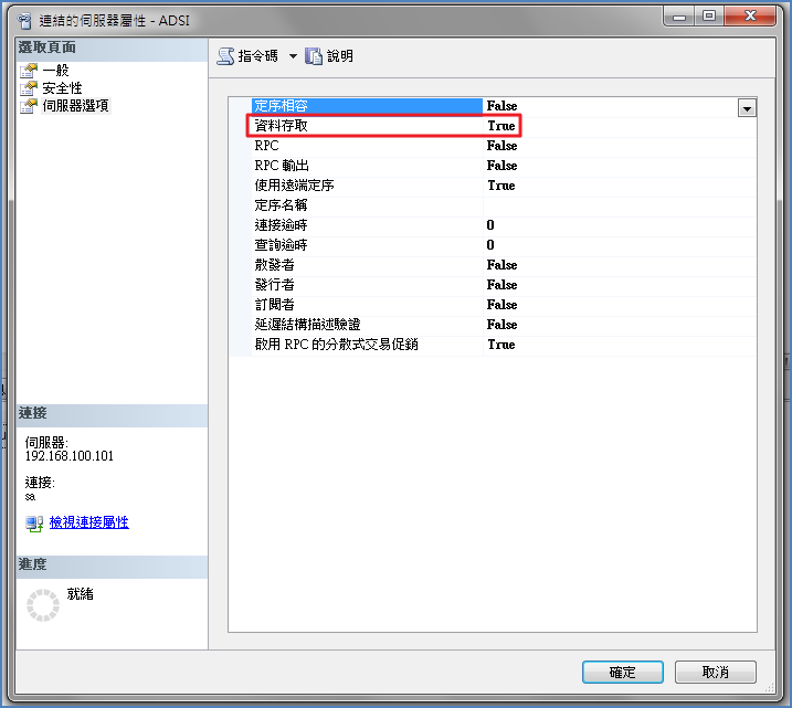 1.連結的伺服器屬性