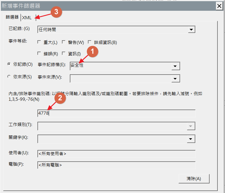 5.開啟事件檢視器,點”詳細資料”→”XML檢視”,得知自訂條件。