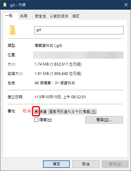 解法:將.git/objects資料夾的唯讀屬性取消即可。