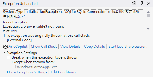 參考來源:【茶包射手日記】.NET Framework 專案 SQLite 執行錯誤:找不到 e_sqlite3
