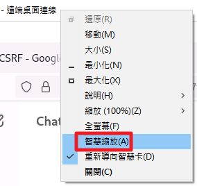 1.連線時在視窗邊緣按右鍵->選擇”智慧縮放(A)”