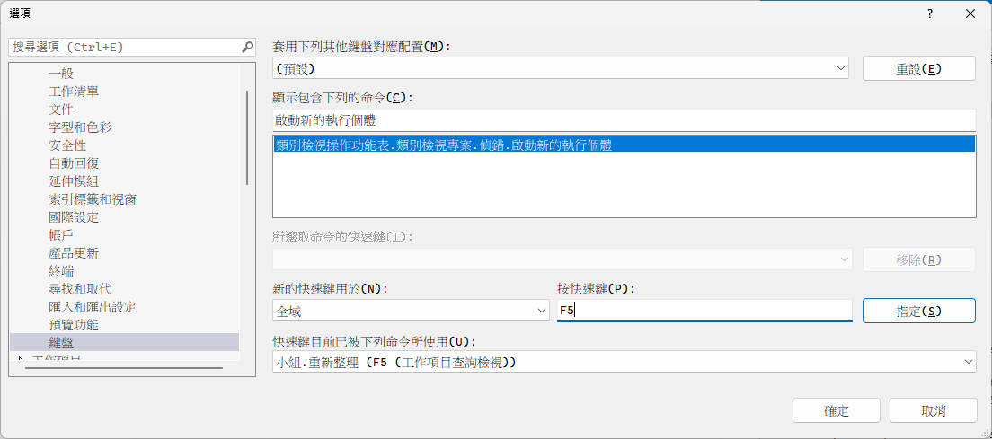 2.尋找”啟動新的執行個體”,再將快捷鍵F5綁定即可。